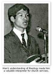 Hien Pham siendo un cristiano y un intérprete para misioneros y las fuerzas americanas, fue arrestado cuando Vietnam del sur cayó ante los comunistas. Su fe fue sacudida bajo la presión y la propaganda del campo de la prisión y él decidió que ya no oraría o pensaría acerca de su fe. Al día siguiente se le dio la terrible tarea de limpiar las letrinas de la prisión. Mientras limpiaba una pequeña lata llena de papel de baño, sus ojos observaron lo que parecía ser una hoja de papel con impresiones en inglés. Él rápidamente la tomó, la limpió, y después de que sus compañeros de cuarto se fueron a dormir esa noche, él sacó el papel y empezó leer de Romanos 8: Y sabemos que a los que aman a Dios, todas las cosas les ayudan a bien… por lo cual estoy seguro… ni ninguna otra cosa creada nos podrá separar del amor de Dios, que es en Cristo Jesús Señor nuestro. Hien lloró, sabiendo que esta era la palabra de Dios para él, habiendo decidido tan solo la noche pasada rendirse. El oficial de la prisión que pensó que la biblia solo podía servir como papel de baño de hecho rescató la fe de un creyente. Después de encontrar la escritura, Hien le preguntó al comandante si podía limpiar las letrinas con regularidad. Cada día él recogía una porción de las escrituras, la limpiaba, y las adhería a su colección de lecturas nocturnas.